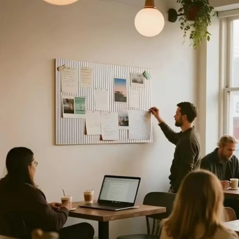 לוח קיר עשוי לבד בגודל 40×60 ס״מ, מושלם להצגת תמונות, פתקים וזיכרונות בצורה מסודרת ואסתטית. מוסיף מראה חמים ומודרני לקיר, ומתאים לסלון, לחדר שינה או כרקע מעוצב לטלוויזיה.