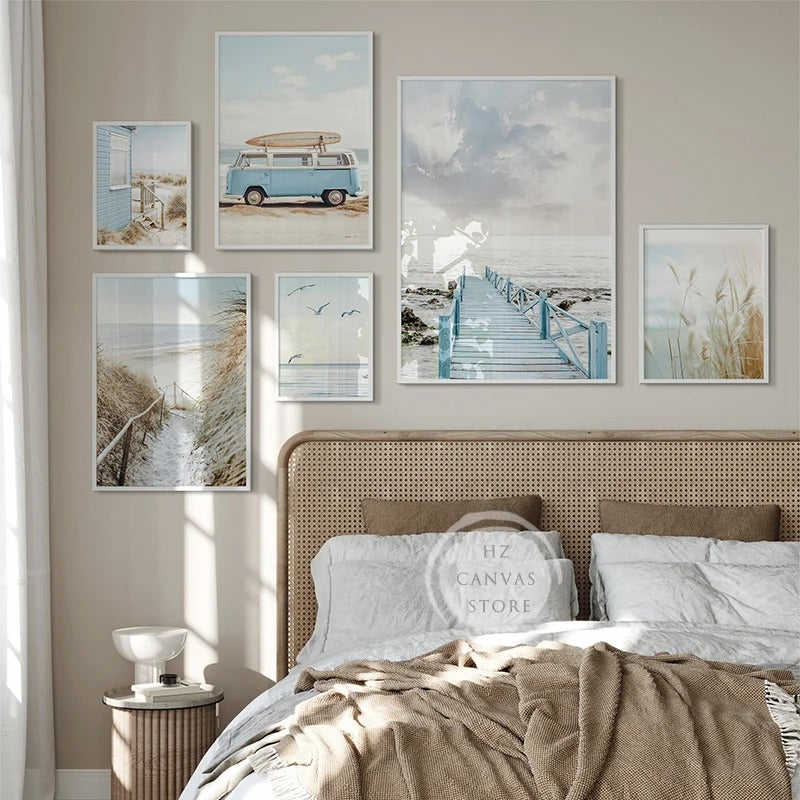 פוסטרים והדפסי קנבס בסגנון בוהו – נוף ים עם טאץ’ טבעי