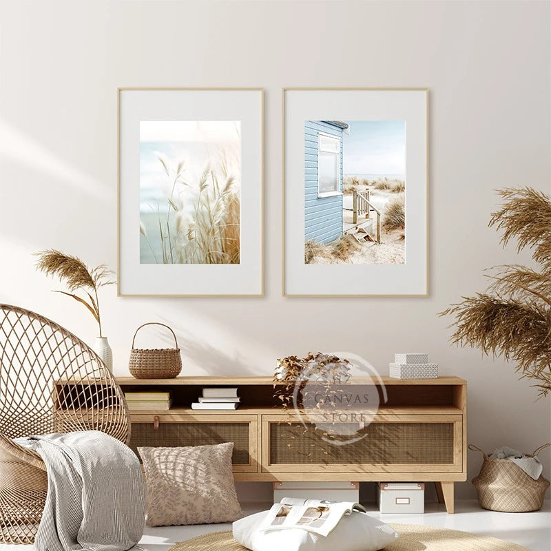 ציורי קנבס מעוצבים בהשראת נופי ים וחוף, בשילוב עשב פאמפס, בסגנון בוהו רגוע ומודרני. מוסיפים תחושת רוגע, טבע וחמימות לכל חלל – סלון, חדר שינה או משרד.
